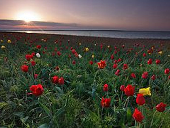 Meadows of wild Tulipa schrenckii, also known as Tulipa suaveolens, would have been familiar to Chekhov during his childhood ...